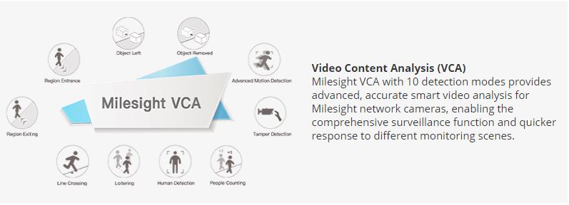 Milesight VCA với 10 chế độ phát hiện cung cấp phân tích video thông minh tiên tiến, chính xác cho camera mạng Milesight, cho phép chức năng giám sát toàn diện và phản ứng nhanh hơn với các cảnh giám sát khác nhau.
