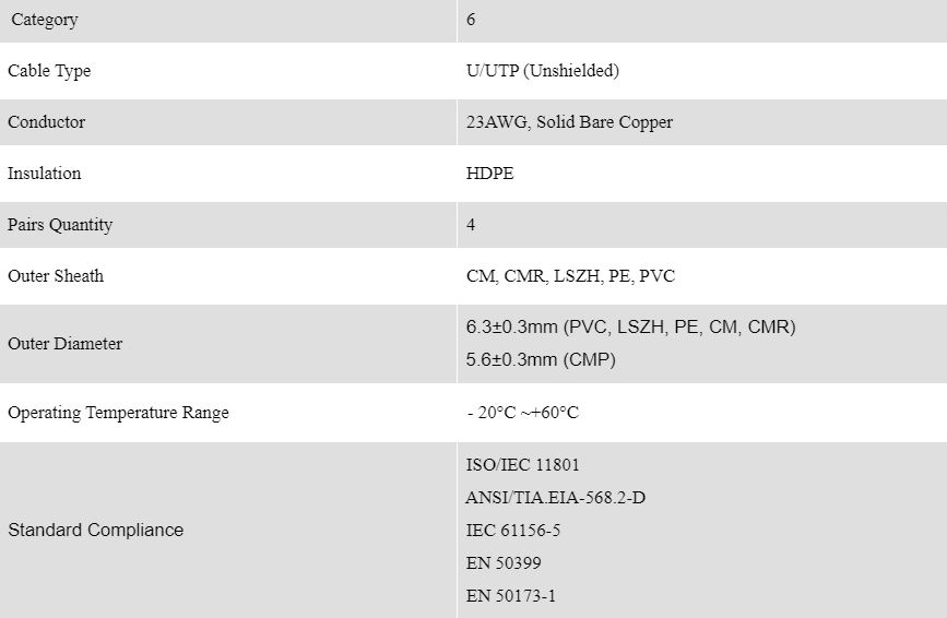 Cáp mạng Cat 6, 4 Pair, U/UTP, 23 AWG solid, PVC / LSZH / CMR / CM tùy chọn, cuộn 305m