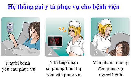 Hệ thống chuông báo gọi y tá hoạt động khá đơn giản. Khi bệnh nhân nhấn nút chuông, tín hiệu sẽ được truyền đến bảng hiển thị và đồng hồ báo tin nhắn. Ở đây sẽ hiển thị số phòng, số giường đang cần sự trợ giúp kèm theo âm thanh thông báo để y tá hoặc bác sĩ có thể nghe được.